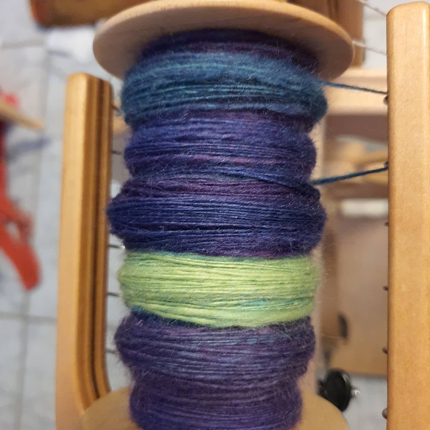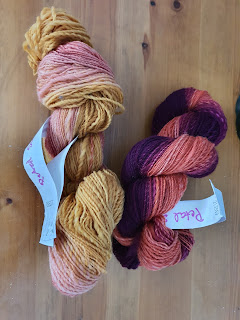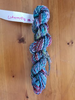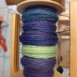 Erica finished spinning her latest superwash yarn, in the colorway Petal, more on this spin posted on Weavolution. Although she got rid of most of her superwash stash in last year's destash, there were some colorways, like Petal, that were so beautiful they did "spark joy" and she kept them. Although she still does not like the feeling of superwash fibers in her hands, this colorway was so beautiful it was still a joy to spin. Erica is actually looking forward to weaving or knitting with these superwash yarns to see how they behave and see if that changes her mind about superwash wools.