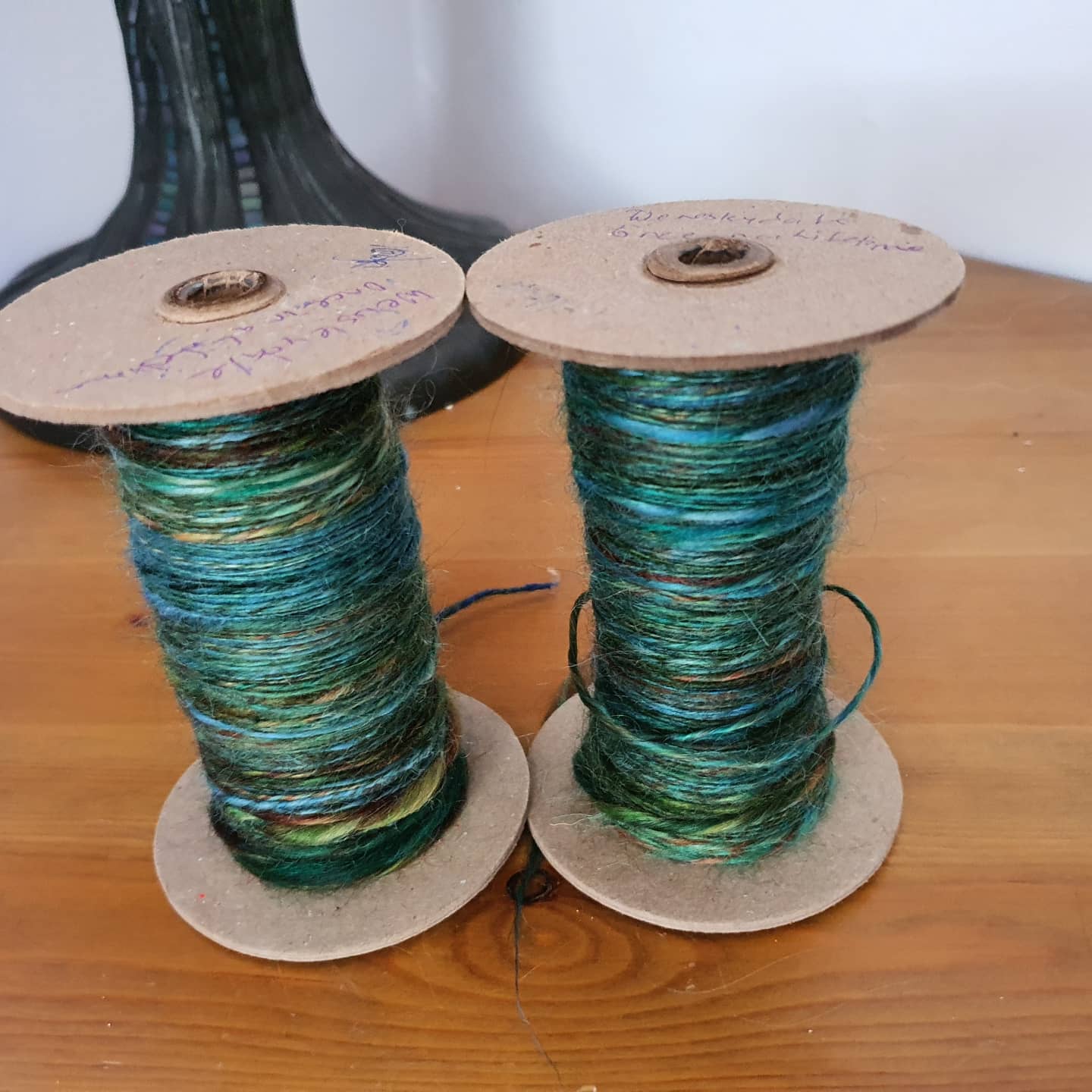 Tea Leaves single rewound onto storage bobbin Falling leaves rewound