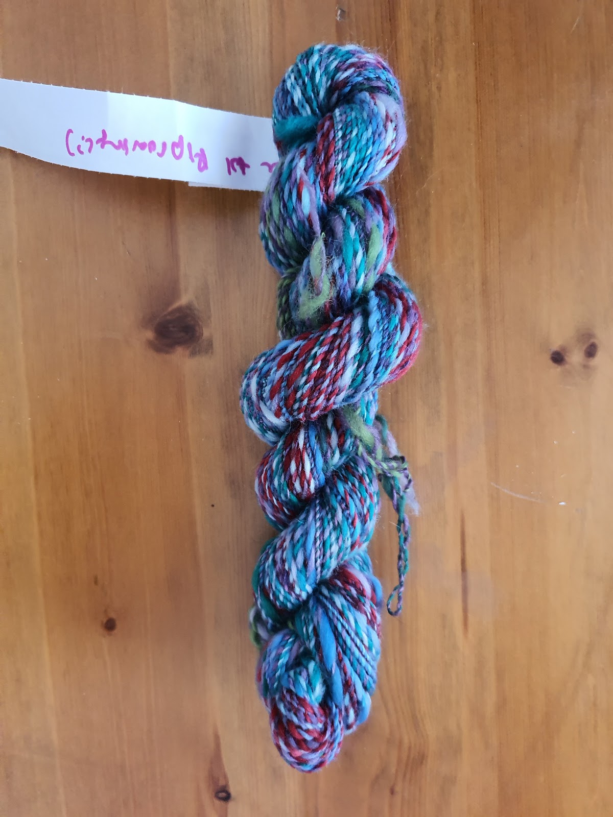 She may have taken too much of the twist out in some areas as it pulled apart a few times while putting it on the niddy noddy. It sits as a nice flat skein though, which she thinks is a good sign that it doesn't have too much twist for a single.