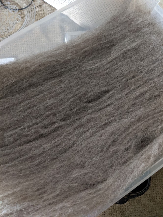 Michelle has also been carding some Romney fleece from a local farm called 3L&S. It has much more lanolin in it than she's used to and ended up washing this fleece again after opening up the locks.