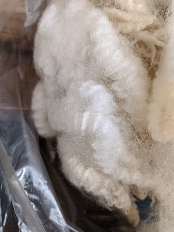 Michelle ordered a Cotswolds fleece from Ewetopia Cotswolds and received this gorgeous fleece. This will be great for hair and beards. She'll leave some white and dye some.