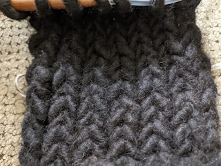 Michelle has started knitting a purse out of core spun rug yarn. She thinks it will look great but might weigh a ton.