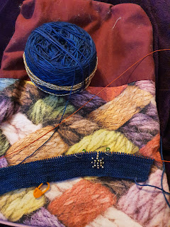 Dueling Club fingerless Mitts are underway! :) Now that she has started knitting with beads, she's not sure why she ever thought she did not want to knit with beads! It is very easy! Erica does however recommend finding small children to thread the beads, if you have a large number to thread.