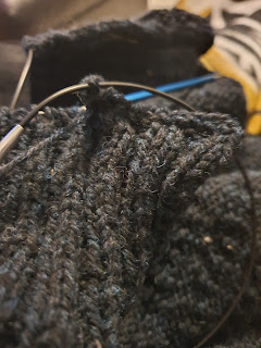 Finished knitting the body of her Ginny cardigan. While knitting this cardi (and listening to one of Rick Riordan's books on Audible) it occurred to her that knit stitches are a bit like finger cuffs, if you get them too far apart from each other or too close together they get tighter! :) Thank you Jenny of Jenny's Surprisingly Stretchy Bind off!! I don't know who you are or how you figured this out, but yes this is the perfect stretchy bind-off!!!! The bind off took quite a bit of time, but it was definitely worth it!