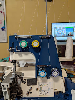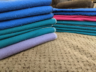 Michelle made some "flannel towels" to use in place of paper towels. She was given a serger to use, so she had to figure out how to use it. Eventually, she got it working properly and made a large stack of flannel towels. They have nicer edges than the ones she had only zig zagged.