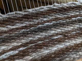 Michelle also warped her loom and wove a rug with her core spun alpaca rug yarn. It's so soft! She had sent some alpaca fleeces to Rovenko's Windy Acres mill to be spun. They variegated (after asking) the colors in the yarn and it turned out so perfect!