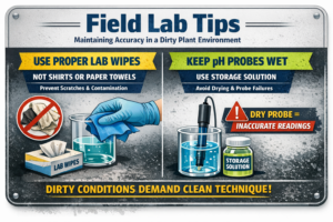 Katie describes the first surprise of field work: a central plant is “very dirty,” and the job demands good technique without chasing lab-level perfection. She shares a couple of simple practices that prevent expensive problems. Use proper lab wipes on glassware instead of shirts or paper towels, which can scratch surfaces and compromise readings. Keep pH probes wet with the correct storage solution, because once they dry out, they often stop working.